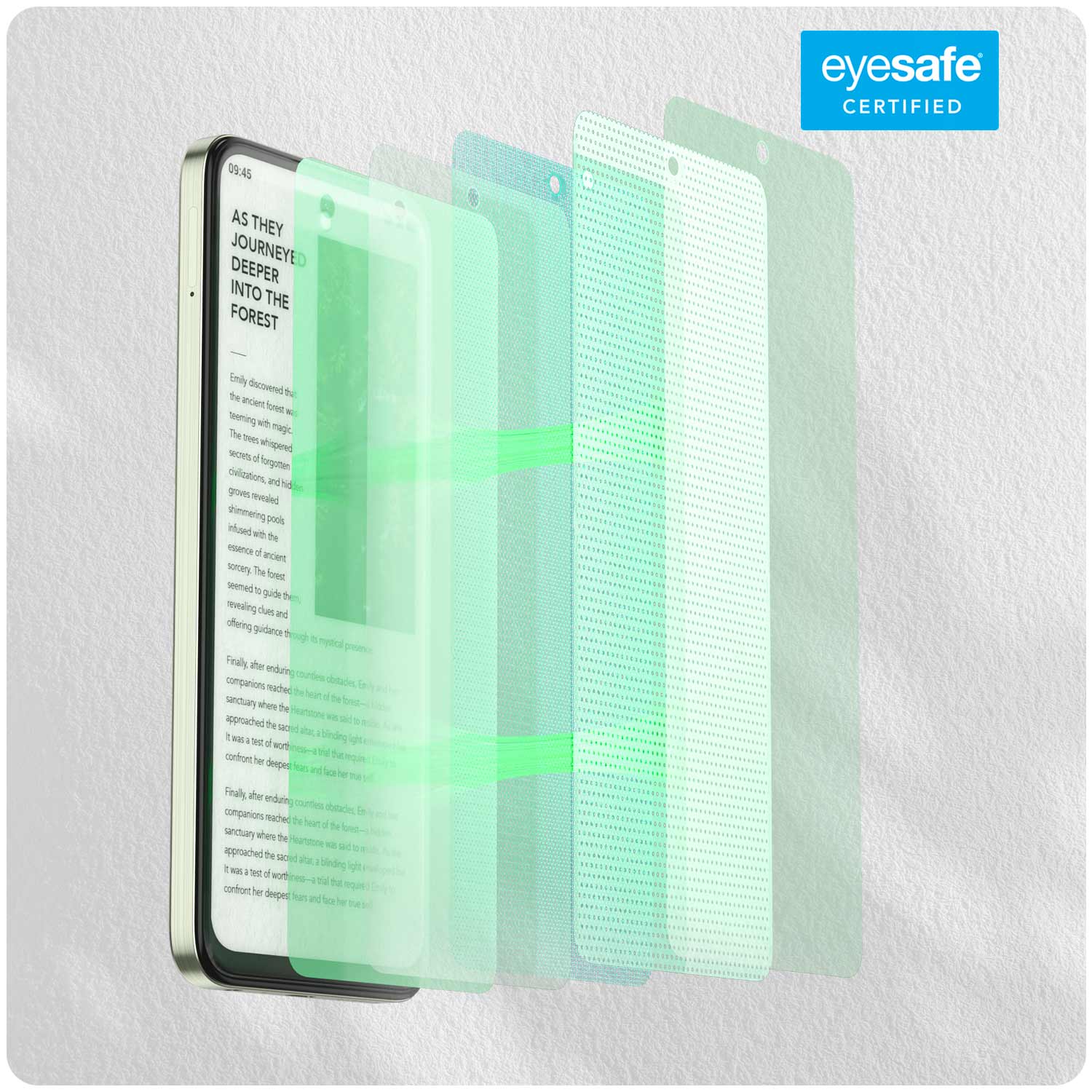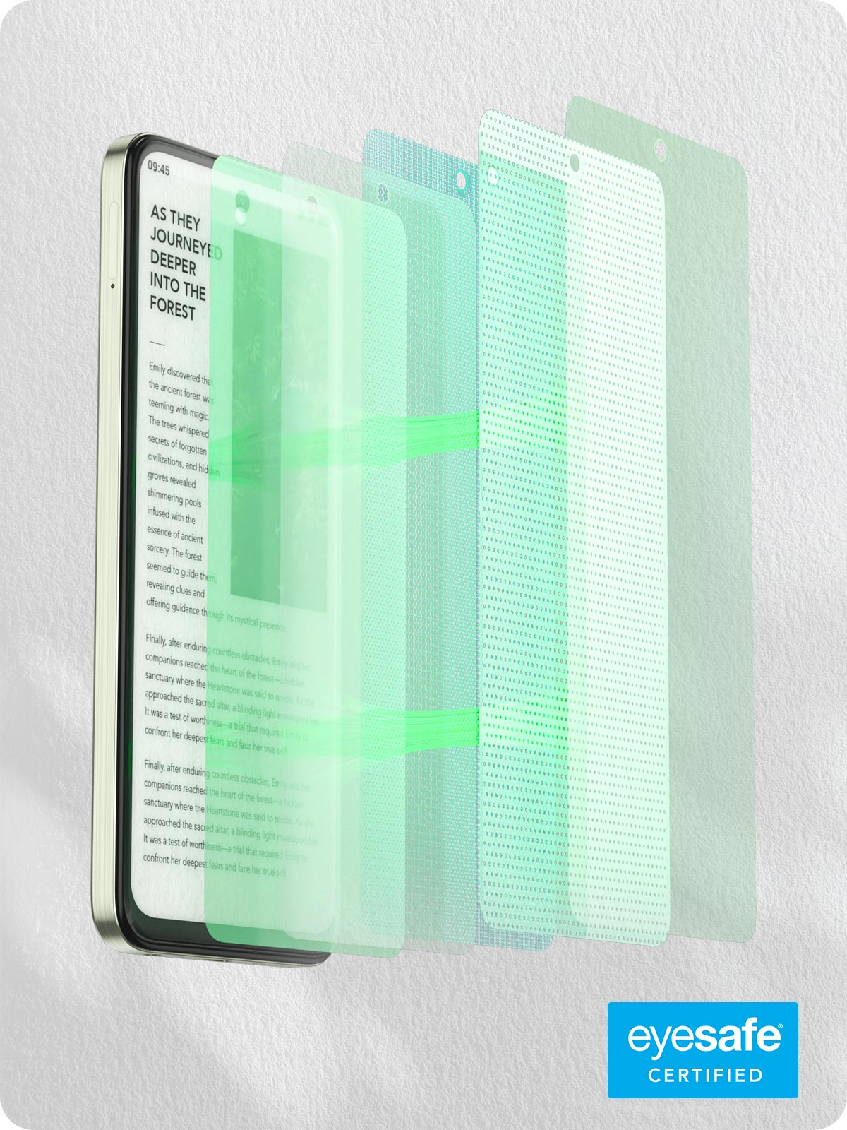 Experience unmatched eye care that minimizes blue light and glare, ensuring comfort during long phone sessions, whether you’re working or unwinding with nighttime reading.