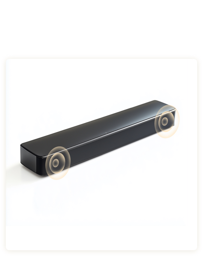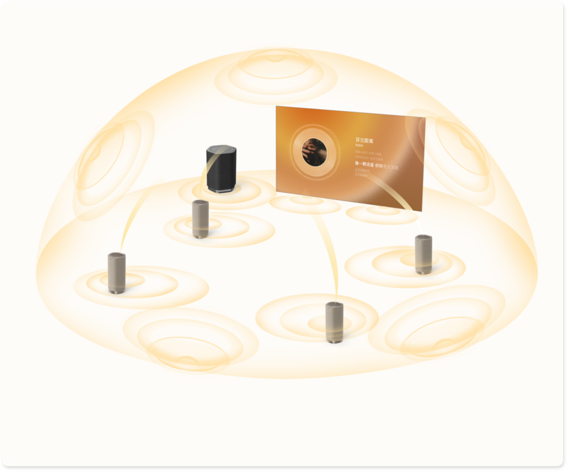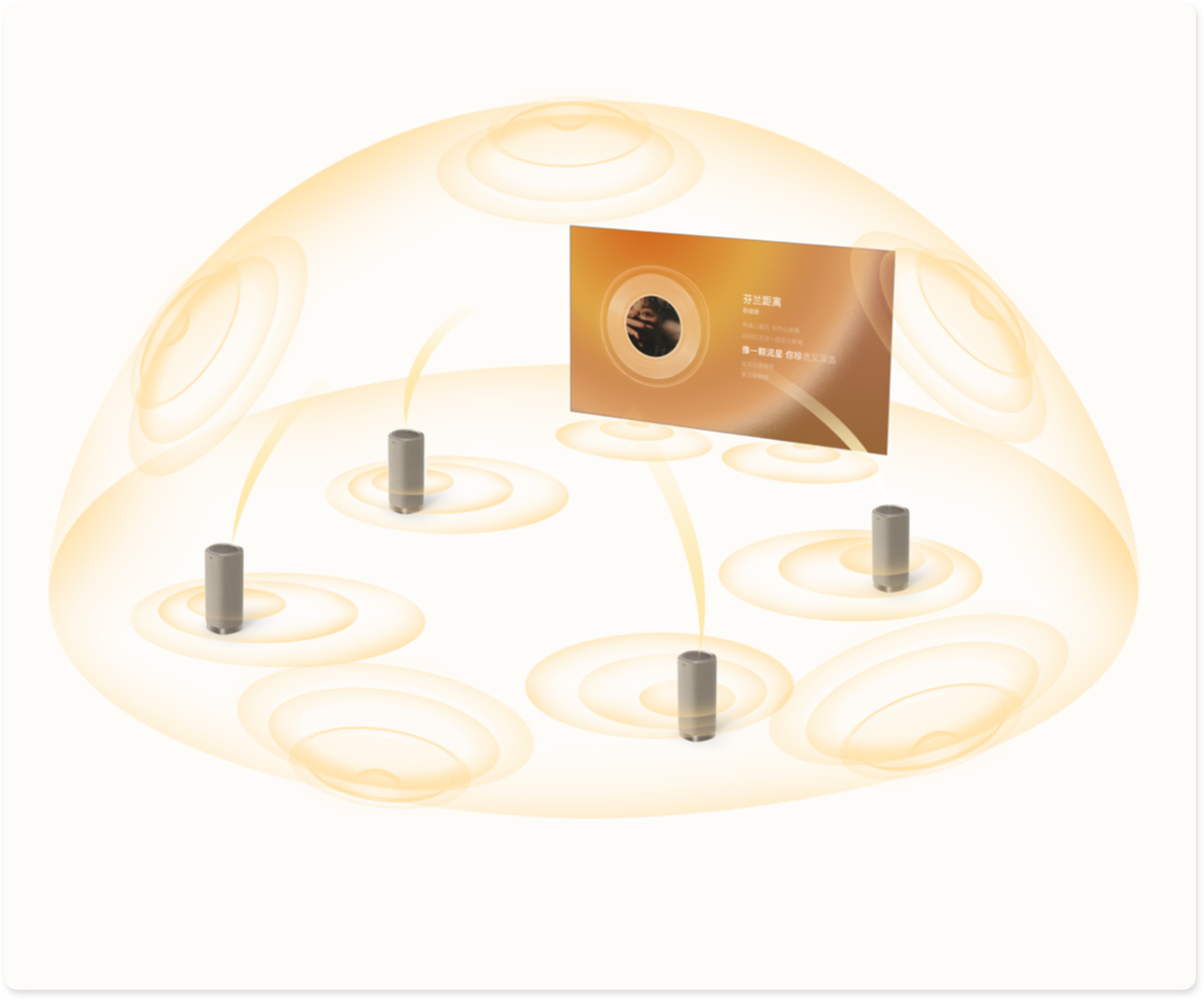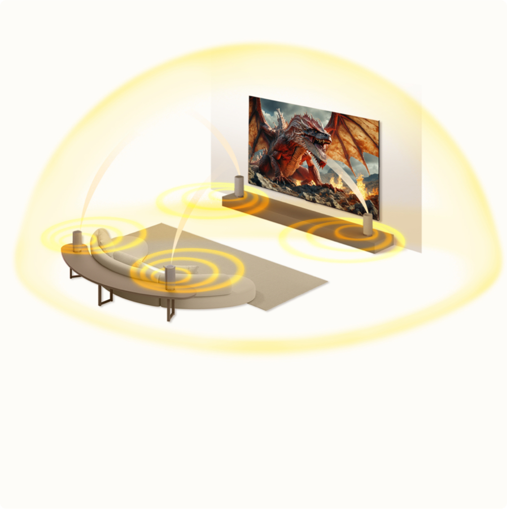 The optimized high-penetration speaker layout delivers crystal clear sound, allowing rich sound details and high-fidelity audio to be experienced from various positions.