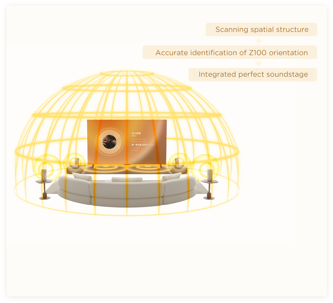 The sound pressure level of a single Z100 can reach the ultra-high sound pressure level of an entire sound bar system, delivering a more immersive and powerful sound, enhanced spatial audio transparency, and an expanded sound stage