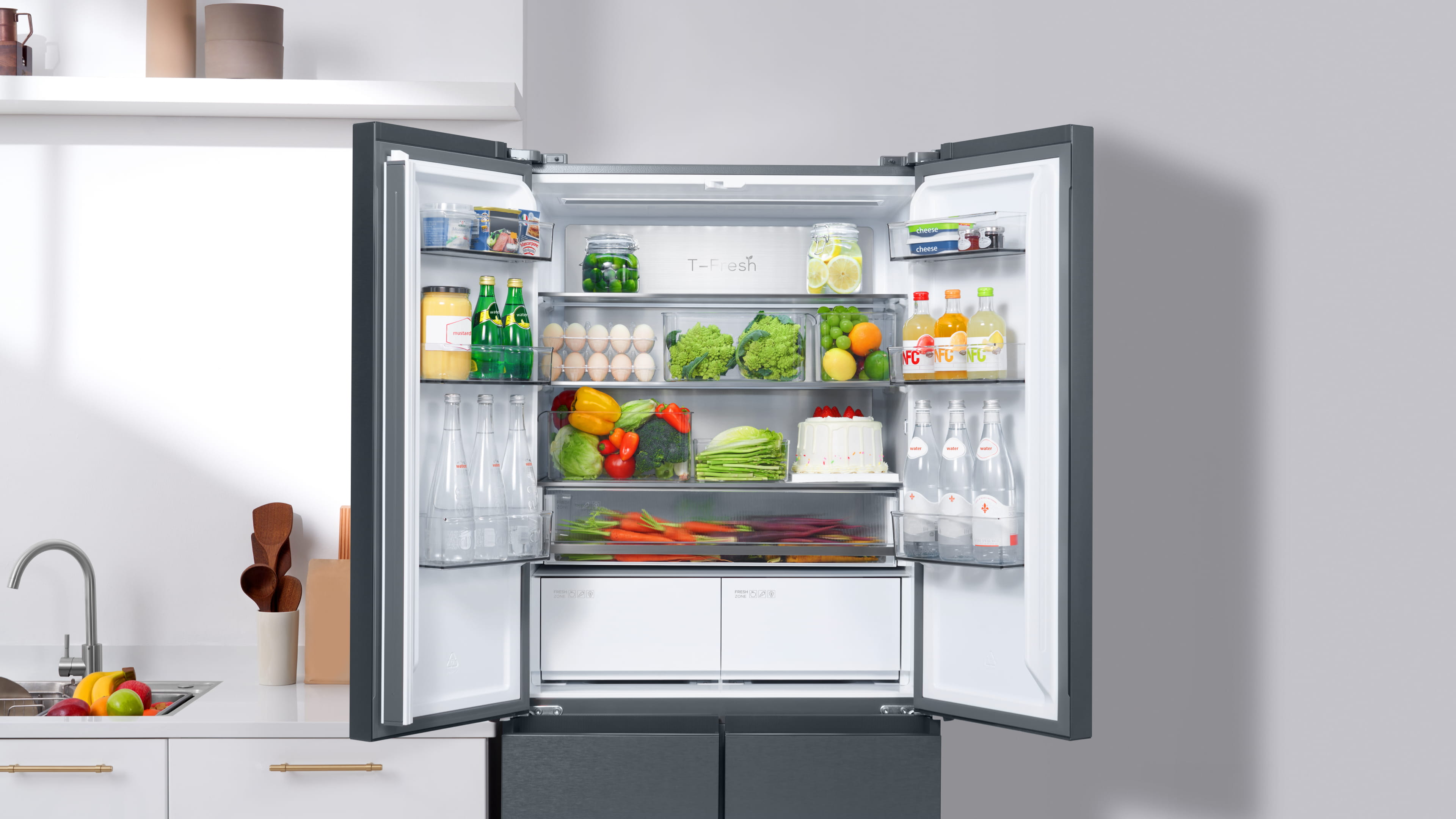 Thanks to the stable recessed hinges, bottom heat dissipation, and TCL 4th generation of microcellular foaming technology, TCL free built-in refrigerator can be easily placed into the cabinet, with only less than 1cm of space in case there is deformation for the cabinet walls, more flexible and suitable for multiple decoration scenarios.