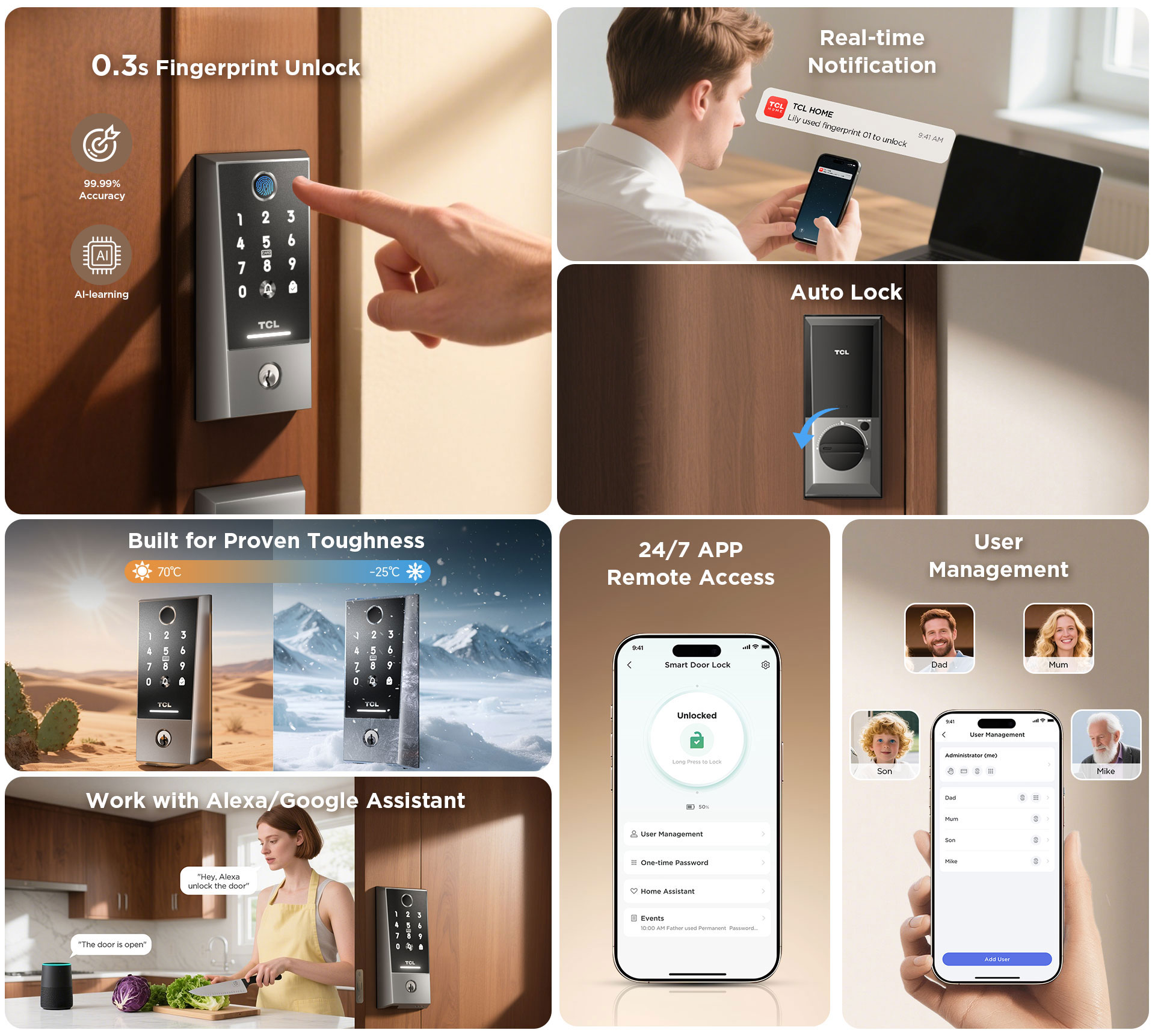 Experience seamless remote access with TCL innovative app. Grant entry to guests, open doors hands-free, and secure your home from anywhere. Stay informed and protected with advanced encryption and real-time alerts, all at your fingertips.