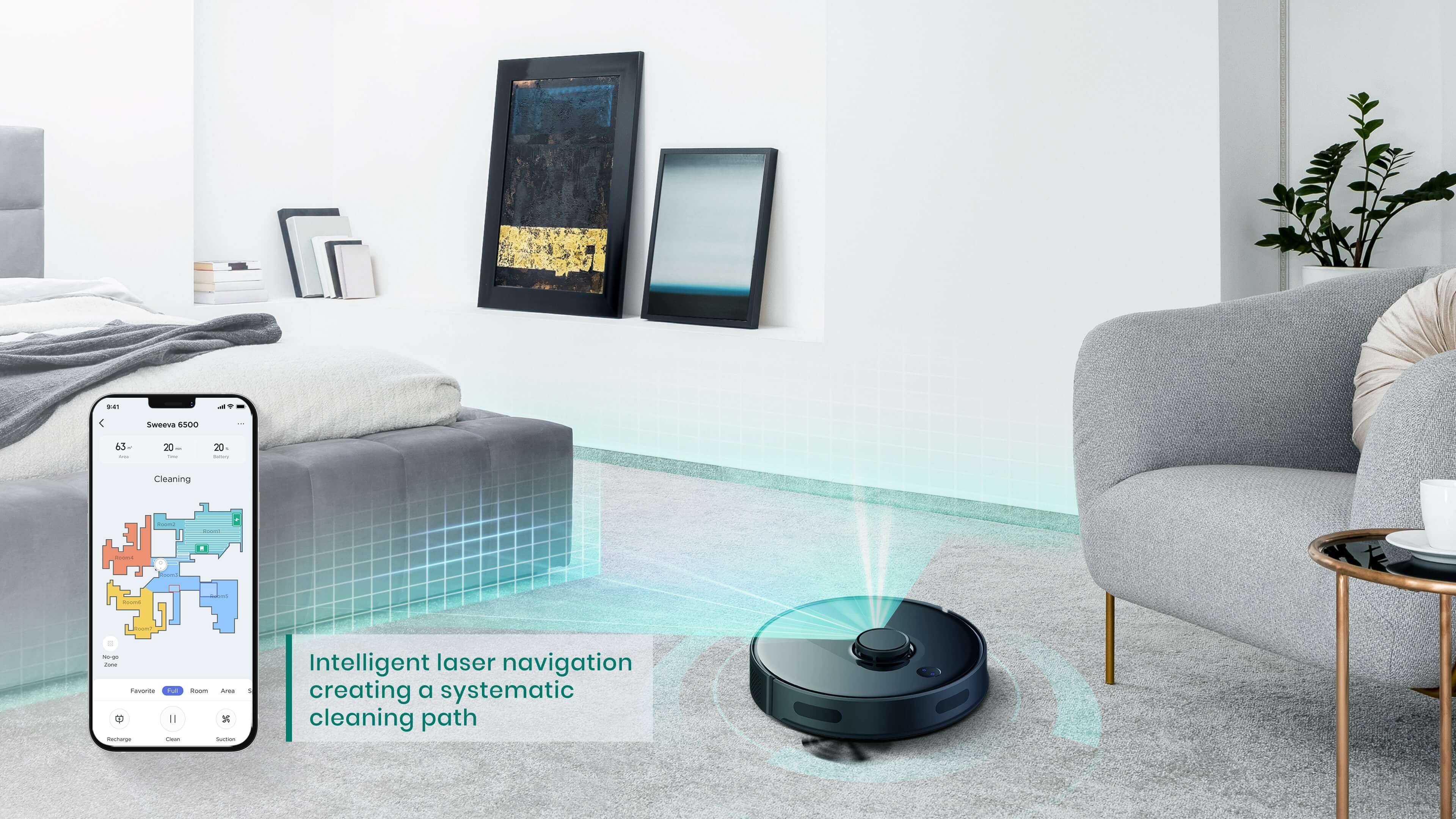 Intelligent laser navigation scans the room at a speed of 6 rounds per second to obtain distance information between the objects in your room and creates a systematic cleaning path