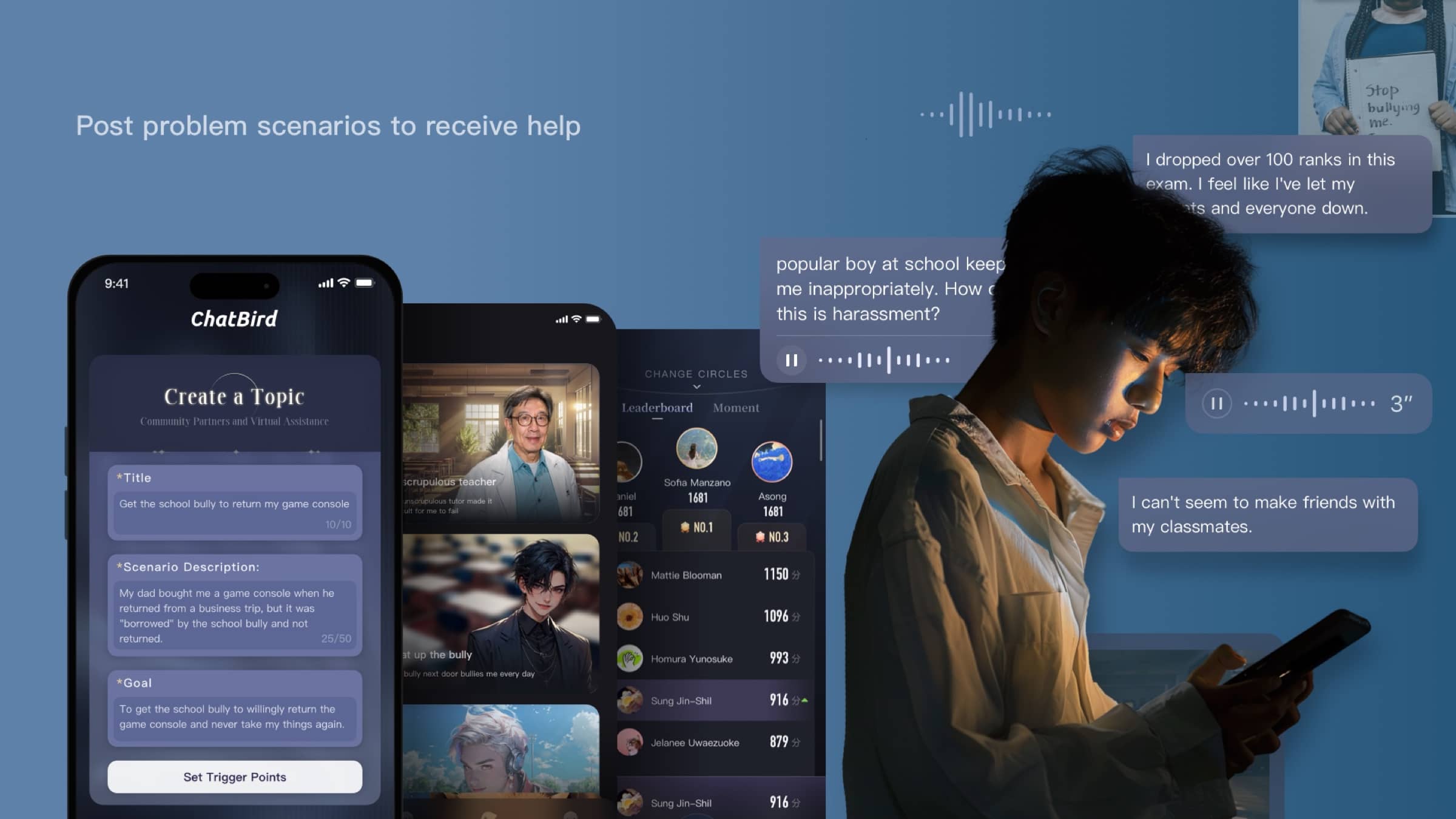 TCL ChatBird is an AI virtual companion app designed to support teenagers' growth, with a focus on mental health. Unlike traditional AI chat apps, ChatBird addresses various scenarios, including academics, daily life, and family relationships, offering tailored features such as: - Realistic AI companionship that listens and understands. - Real-life scenario simulations with multi-person support. - Gamified challenges to tackle issues. - Community circles that foster a sense of belonging. - Powered by the latest AIGC technology, ChatBird ensures authentic and immersive interactions.