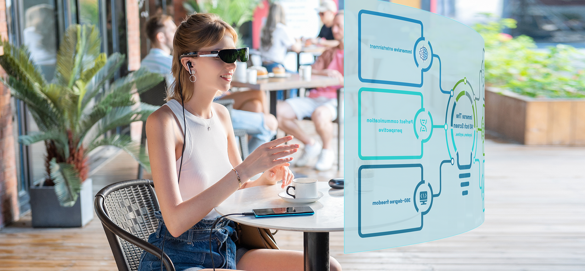 Worn exactly like a traditional pair of glasses, there are no overhead straps to mess up your hair, batteries that need charging, or slots for you to slide a smartphone into with NXTWEAR G. You also don't need an app; simply connect the glasses to any smart device with a compatible USB-C display-out port and put them on for a fantastic visual experience.